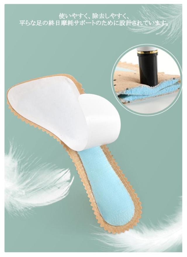 | 本革素材を使用、ヒールでの立ち仕事にお勧め!3足セット! アーチのストレスと痛みを和らげ、動かずに歩いている間に緩衝するのに役立ちます。 踵から足指股までの仕様になっておりますので指先が窮屈になりません。 柔らかな素材は汗を吸収し、足裏を乾燥させ、足が滑らないようにすることができます。 粘着力の強いシールをはがして定着させれば、ズレの心配もありません。 使いやすく、除去しやすく、平らな足の終日摩耗サポートのために設計されています。 | |