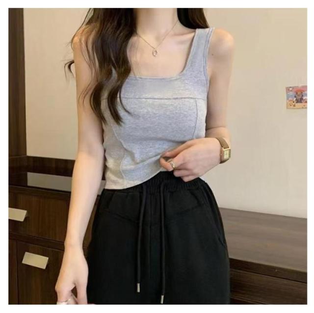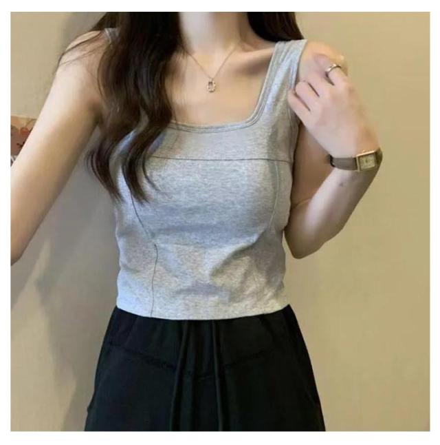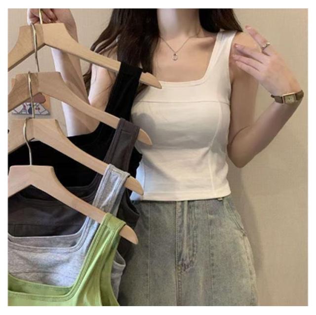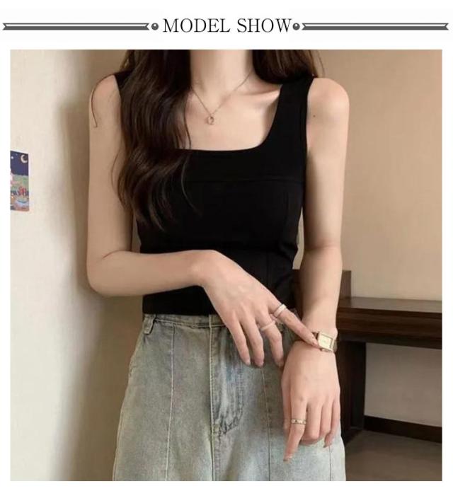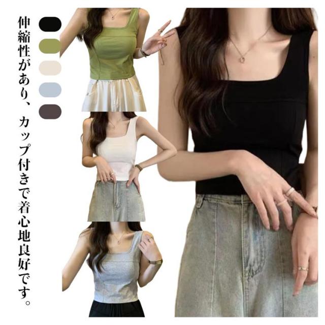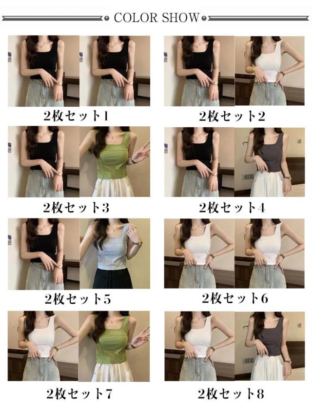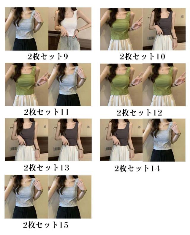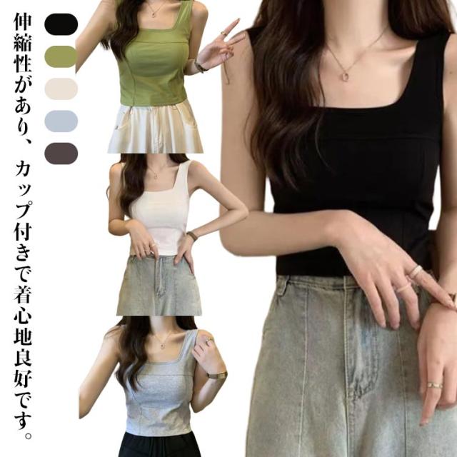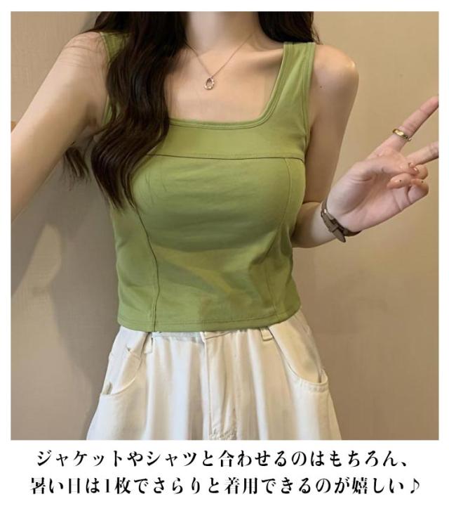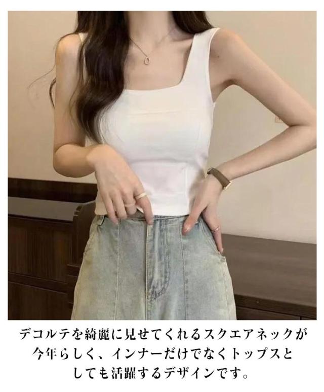 タンク 細見え スクエアネック 2枚セット カップ付き レディース インナー きれいめ ブラトップ タンクトップ トップス キャミソール タンクトップ ノースリーブ シンプル 下着 2枚セット 母の日 カップ一体型 プレゼット ファッション 春 夏