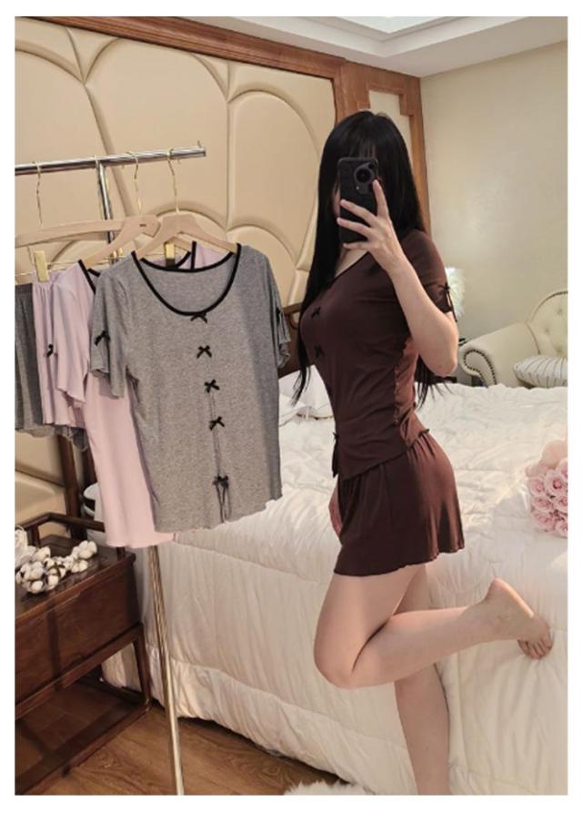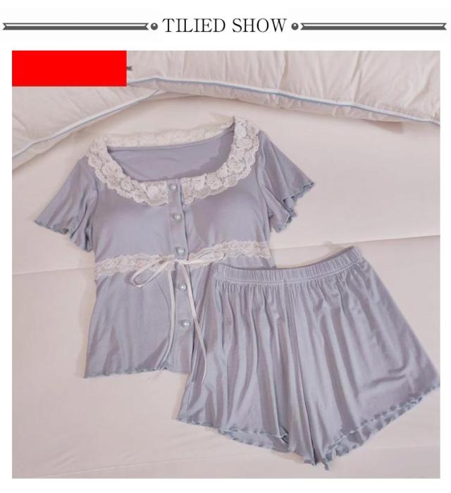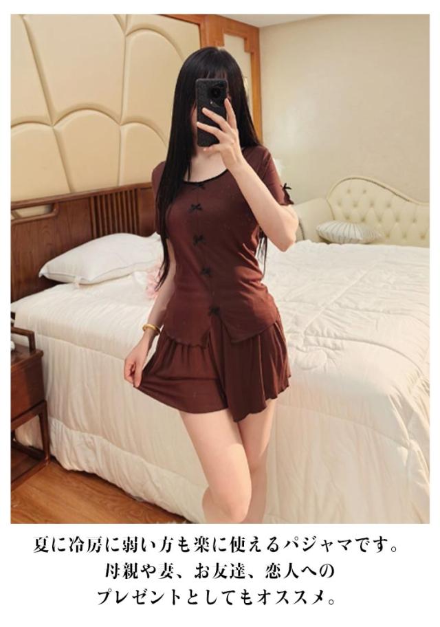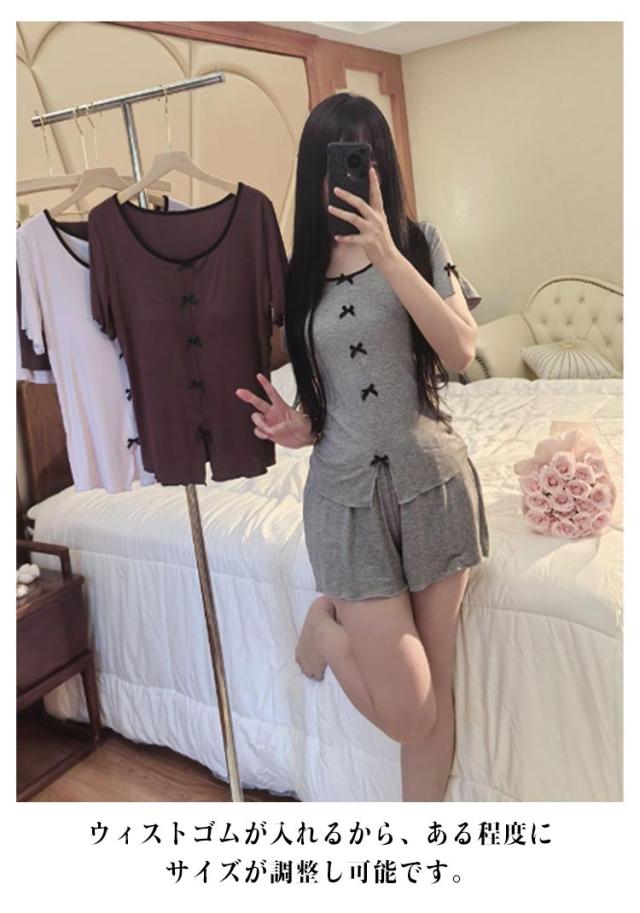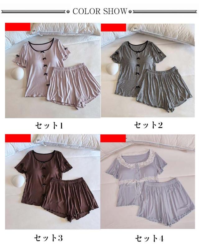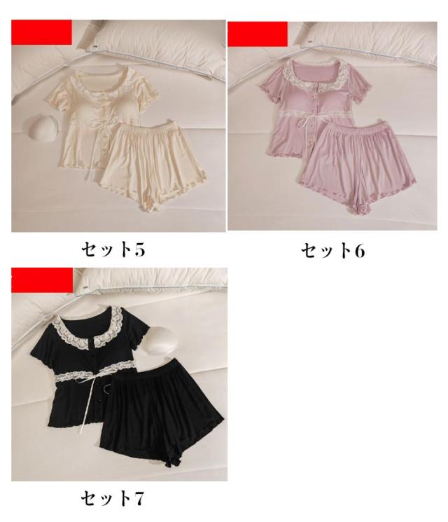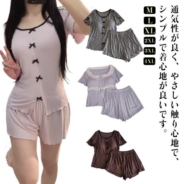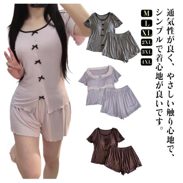 パンツセット パジャマ レディース パンツ 部屋着 半袖 ショートパンツ 上下セット 夏 フリル おしゃれ 薄手 寝巻き ナイトウェア ルームウェア 選べる2Type かわいい レース tシャツ 春 カップ付き 寝間着 カップ付き ゆったり 体型カバー 大きいサイズ 無地