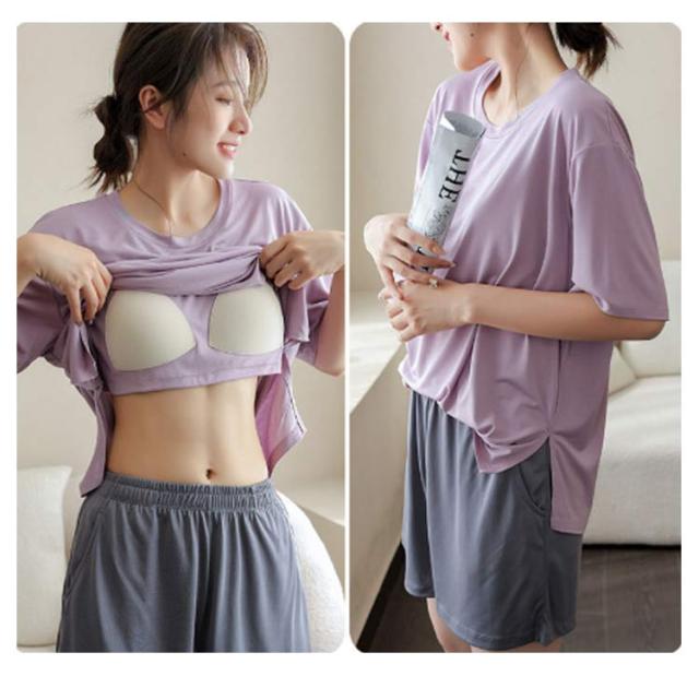 カットソー Tシャツ トップス ブラトップ パッド付 大きいサイズ 半袖インナー 涼しい ストレッチ カップ付き Tシャツブラ カップ付き 7分パンツ 下着 ブラトップ 無地 おしゃれ ショートパンツ 薄手 速乾 伸縮性