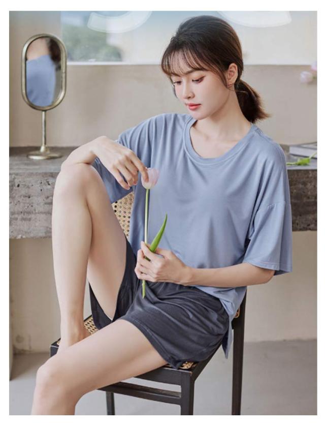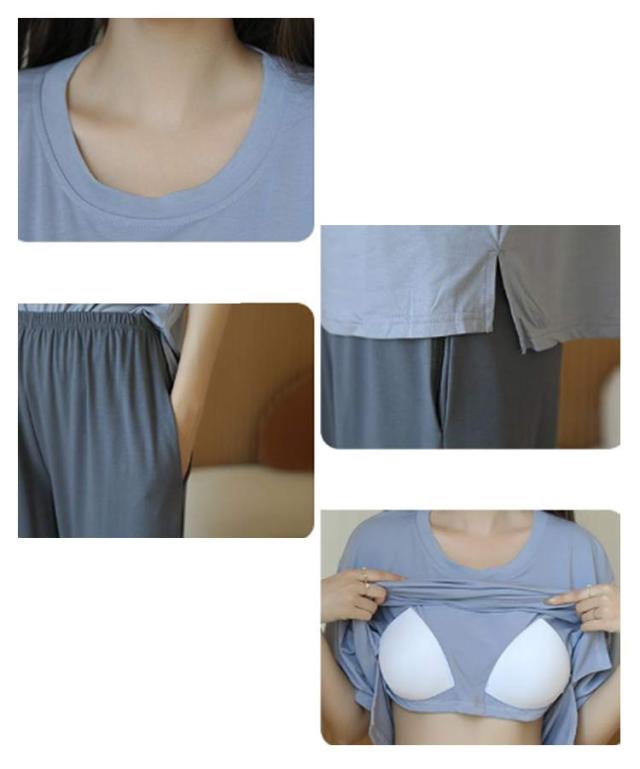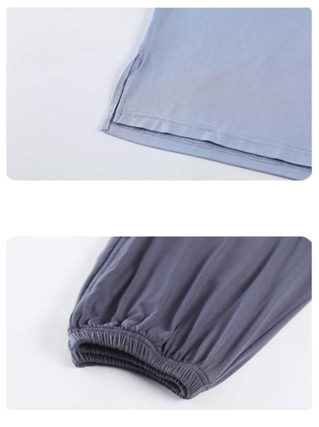| ゆったりとしたカップ付きパジャマ上下セット サラリとした風合いのモーダル素材。 ルームウエアとしてはもちろん、お休みの時にもおすすめ。 選べるパンツ丈、ロングシーンで大活躍するアイテム。 | |