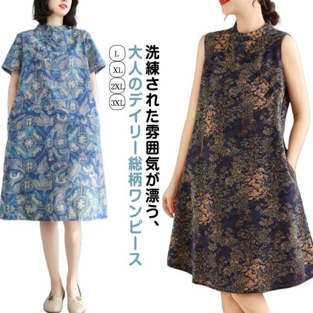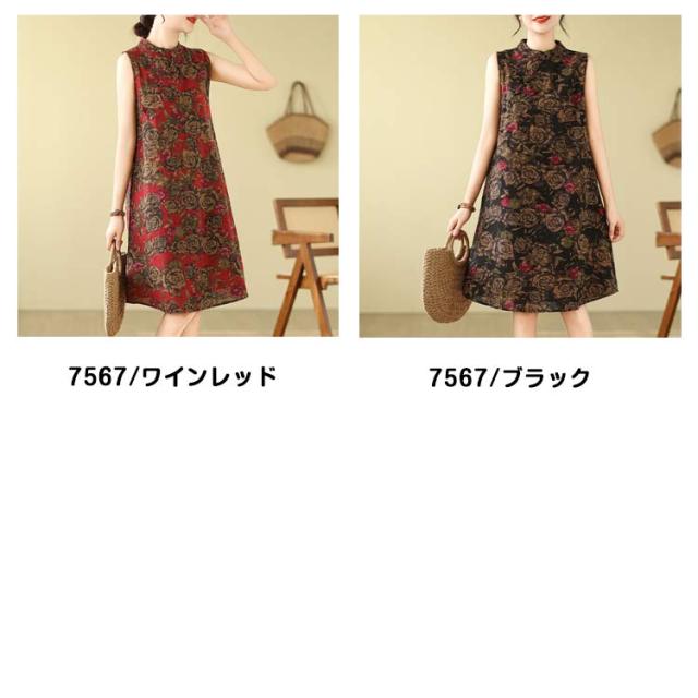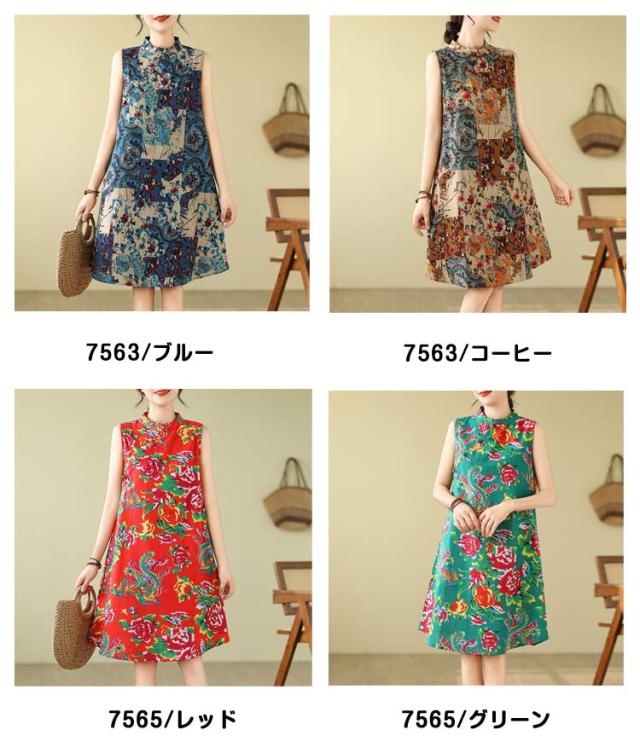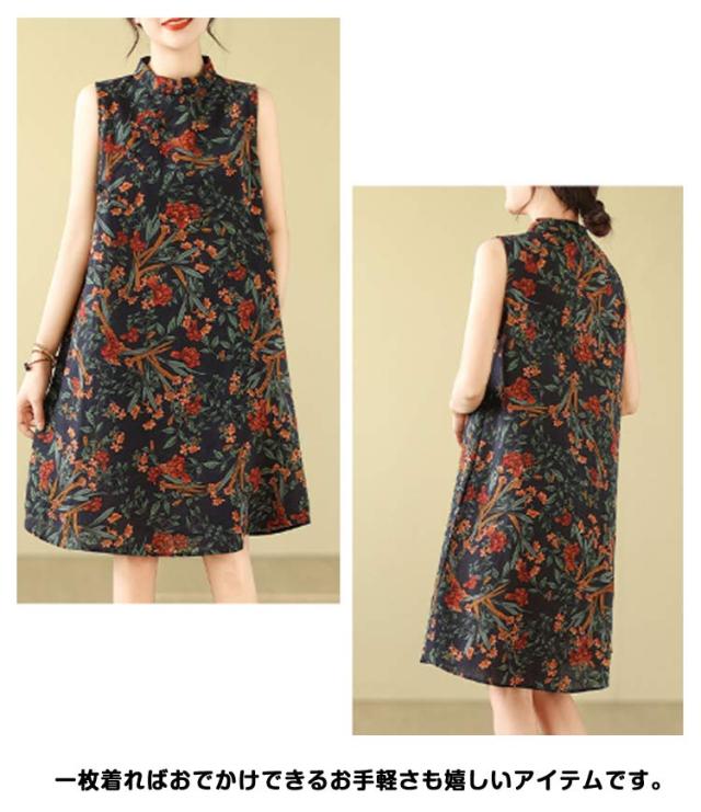 Aライン 大人 ゆったり ワンピ ワンピース 可愛い プリント 春 夏 綿麻調 花柄 膝上丈 ミディアム丈 ワンピース 体型カバー 総柄 着?せ エレガント シンプル カジュアル ノースリーブ 女性 きれいめ 夏服 かわいい 袖なしワンピース