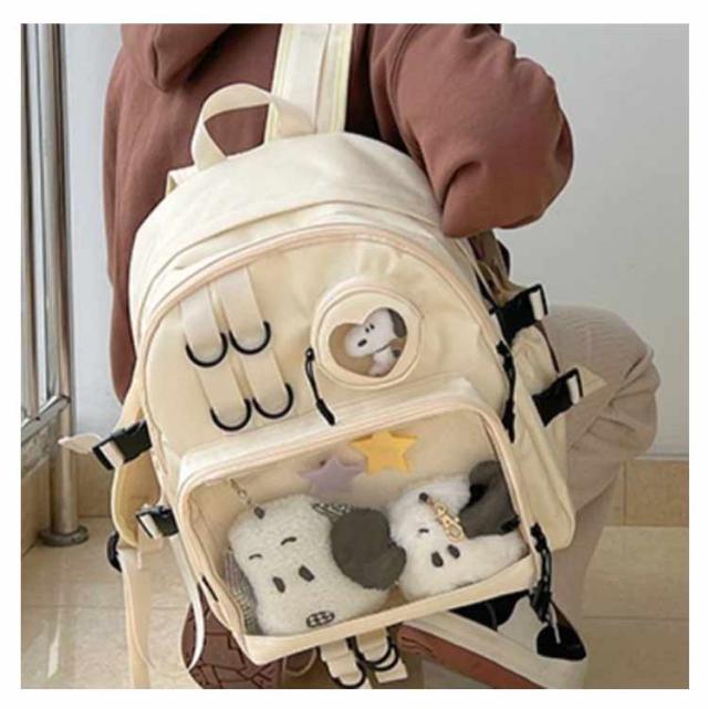 痛バ 学生 缶バッチ カバン 多機能 マザーズバッグ リュックサック 無地 軽量 ナイロン バックパック 鞄 推し活 おしゃれ クリアポケット リュック A4 丈夫 大容量 ビニールバッグ リュック 痛バッグ 鞄 痛バッグ