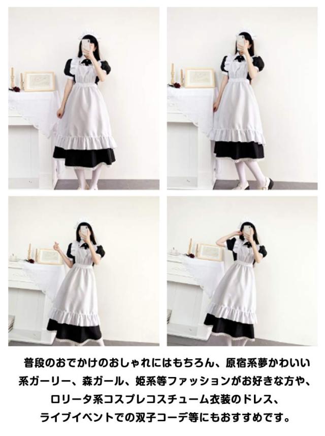 ワンピース ゴスロリ 大きいサイズ 3点セット ロング丈のメイド服 ロング 戦闘メイド メンズ 女装 ハロウィン 半袖 ロリータ 仮装 レディース メイド服 可愛い カチューシャ付き メイド服 コスプレ 蝶結ぶ パーティー イベント