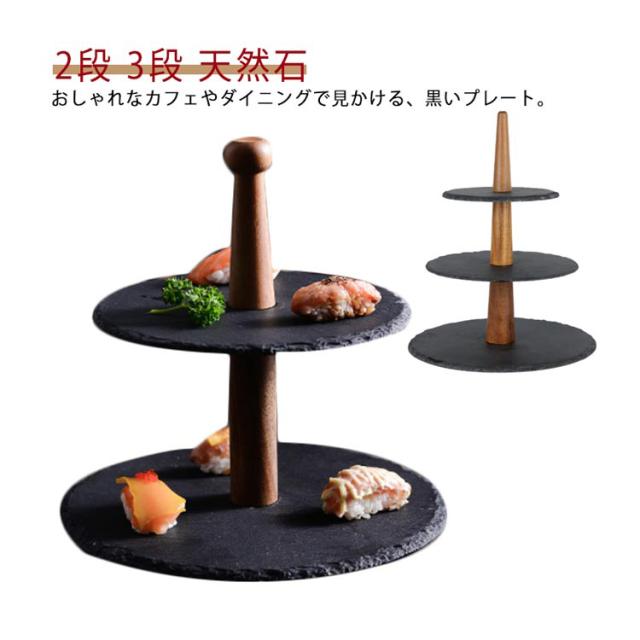アフタヌーンティー お菓子スタンド 天然石 プレート ケーキスタンド 北欧 ケーキトレー 木 2段 石 ケーキスタンド ケーキ台 スタンド ケーキプレート スレート ケーキ 食器 ディスプレイ 和モダン 支柱 プレート おしゃれ タワー型