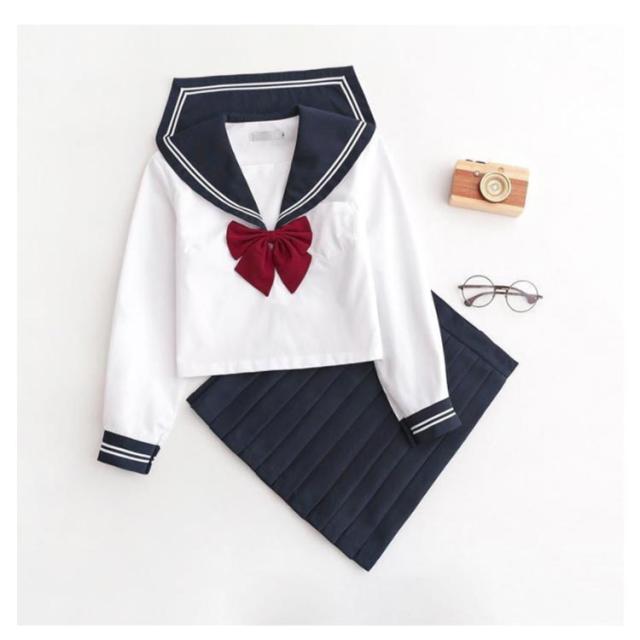| 【セット内容】トップス+スカート+リボンの3点セット。XS〜XLまで!【ネイビー、ブラック】 【 リアルなデザイン 】良質のリボンに、綺麗な折り目のプリーツスカートなど、清潔感溢れるセーラー服に仕上がっています。本格的なコスプレが楽しめます。 【 本格的なつくり 】高品質な生地で、縫製も丁寧に作られております。高級感ある色合いのリボンがアクセント。コスプレのクオリティーを引き上げてくれます。 【 小物もセット 】靴下と合わせれば、よりキュートな女子高生が完成♪コスプレに必要なものが全てセットになっており、すぐにあの頃の学生時代に戻れます。 【 スタイルが綺麗にみえる 】身体のラインが綺麗に見えるディテールにこだわり、キレイなシルエットがスタイルを良く見せてくれます。 【 サイズが選べる 】豊富なサイズ展開で、自分にピッタリあったサイズが選べます。お好みのサイズ感をチョイスして、可愛く着こなして下さいね♪ | |