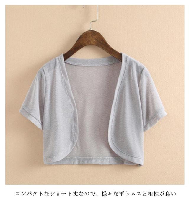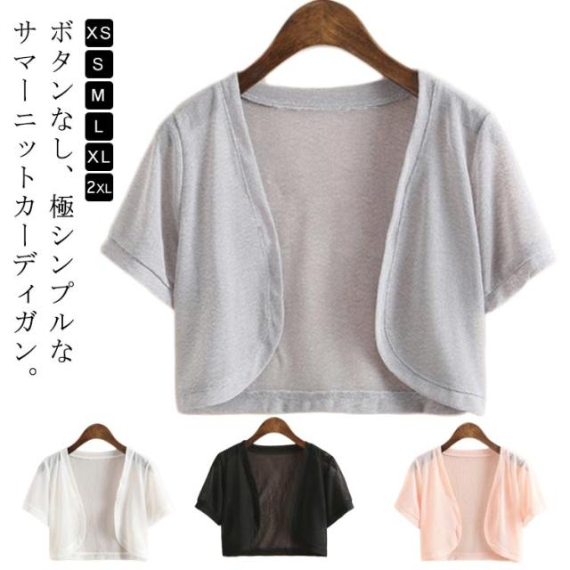 ニットカーディガン ニットカーデ サマーカーディガン 夏用 サマーニット レディース 半袖 コンパクト 透け感 ボレロ 羽織り 薄手 ショート丈 シアー UVカット 紫外線対策 冷房対策 サマーニット ボタンなし 春夏 無地