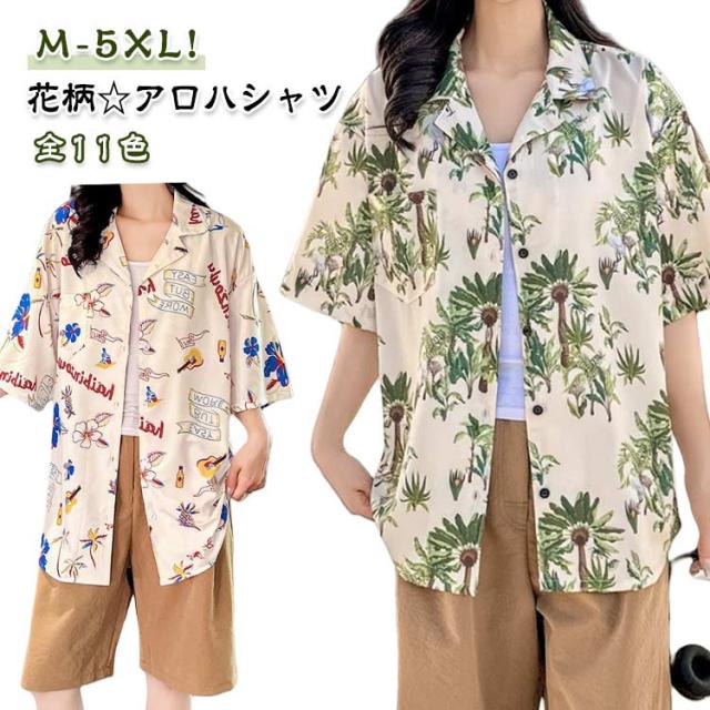 全11色 サマーシャツ レディース 花柄 半袖シャツ ブラウス アロハシャツ 開襟シャツ アロハウェア メンズ シャツ 男女兼用 ハワイシャツ カップルコーデ ペアルック ビーチ 旅行 リゾート