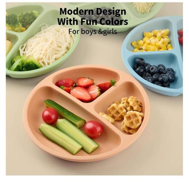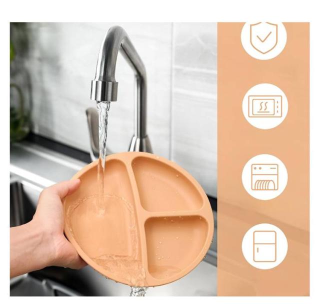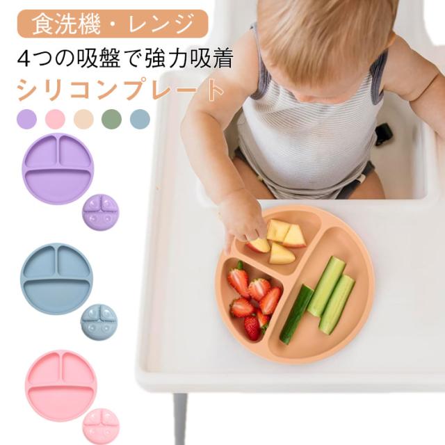 電子レンジOK シリコンプレート シリコンプレート プレート ひっくり返らない ワンプレート シリコン 食洗機OK 4個の吸盤 シリコン すくいやすい 仕切り 食器 便利アイテム 育児 赤ちゃん 離乳食 吸盤付き ベビー 皿 ハロウィン 出産祝い ニュアンス