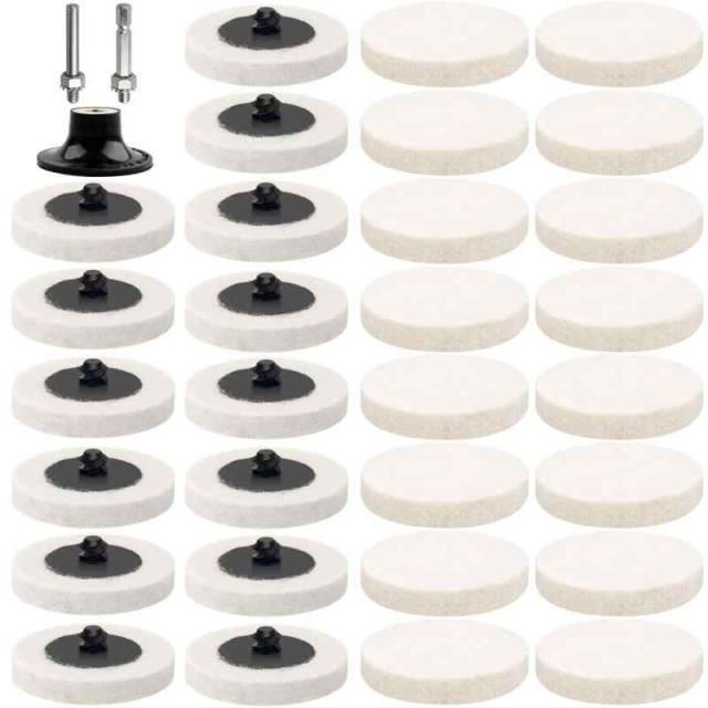 Ninkisann 45枚セット ポリッシャー バフ 50mm 羊毛 フェルトバフ 六角軸 電動ドリル バフ ポリッシャー 車 ガラス研磨用バフ (フェルトバフ 30枚セット)