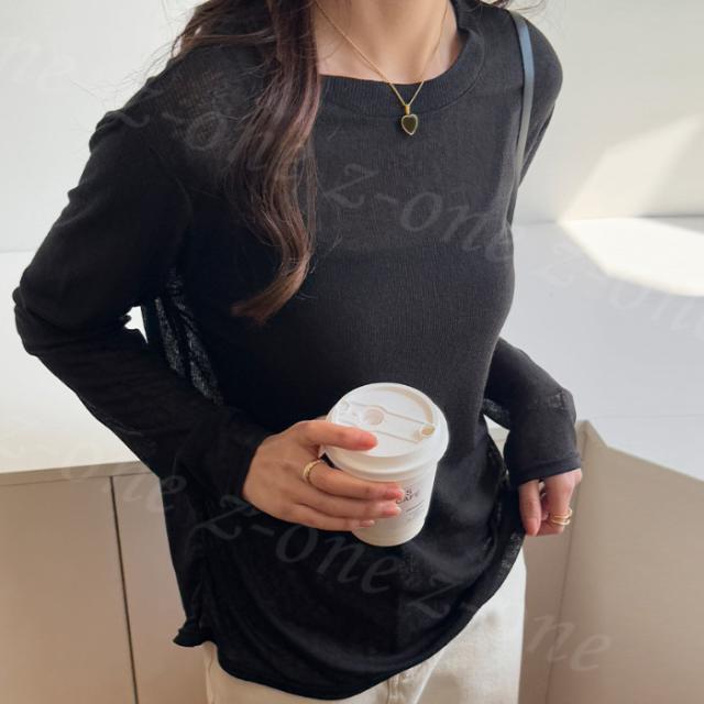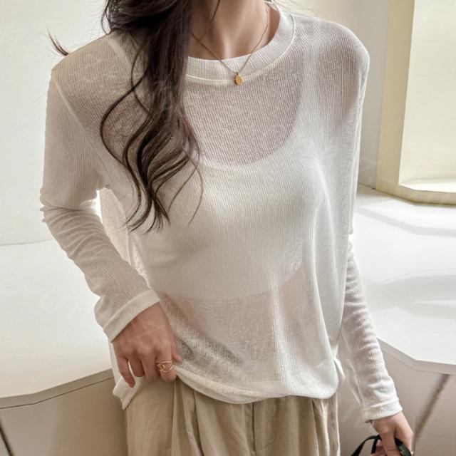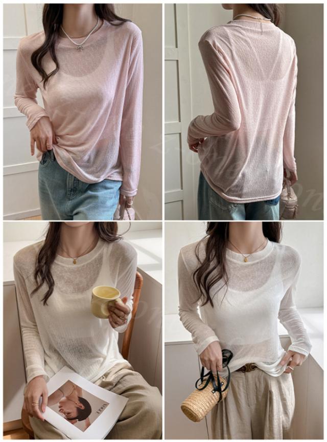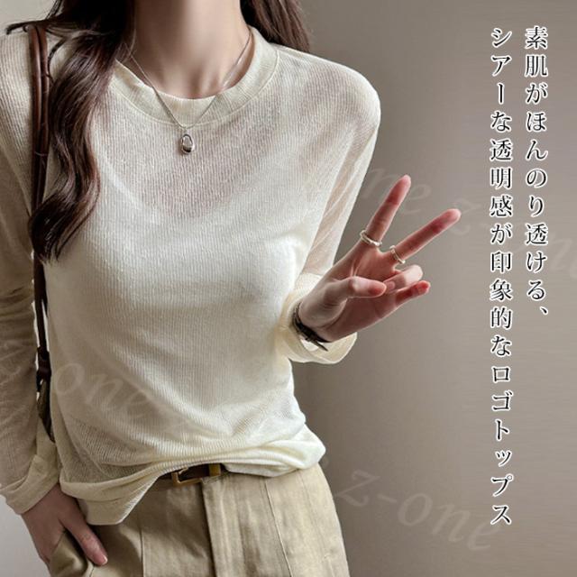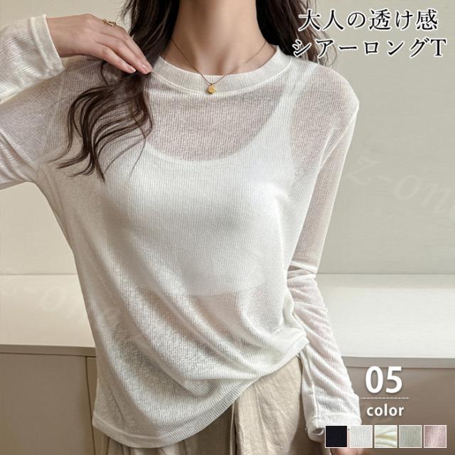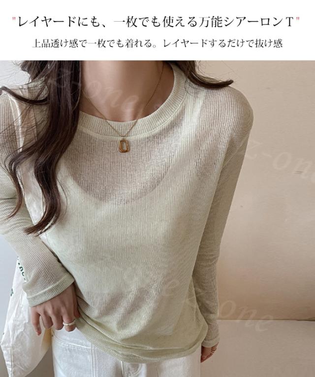 シアートップス シアーロングtシャツ ラウンドネック ロンT 透け感 レイヤード シアー 新作 tシャツ 長袖 インナー カットソー レディース 肌着 トップス 楽ちん シンプル カジュアル 入学式 入園式
