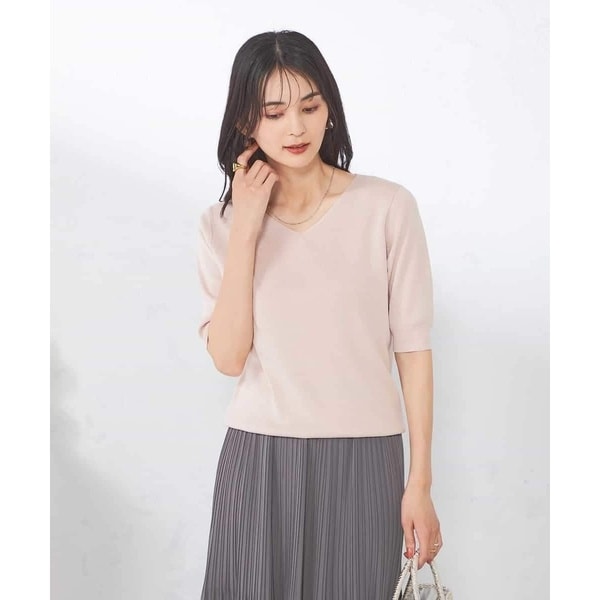 アー・ヴェ・ヴェ(a.v.v)/【接触冷感】ラメVネックパフスリーブニット