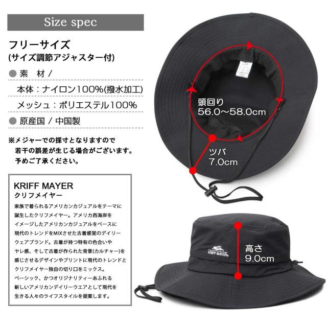 クリフメイヤー(KRIFF MAYER)/撥水加工 リップストップナイロン アドベンチャーハット 吸汗速乾スベリ使用