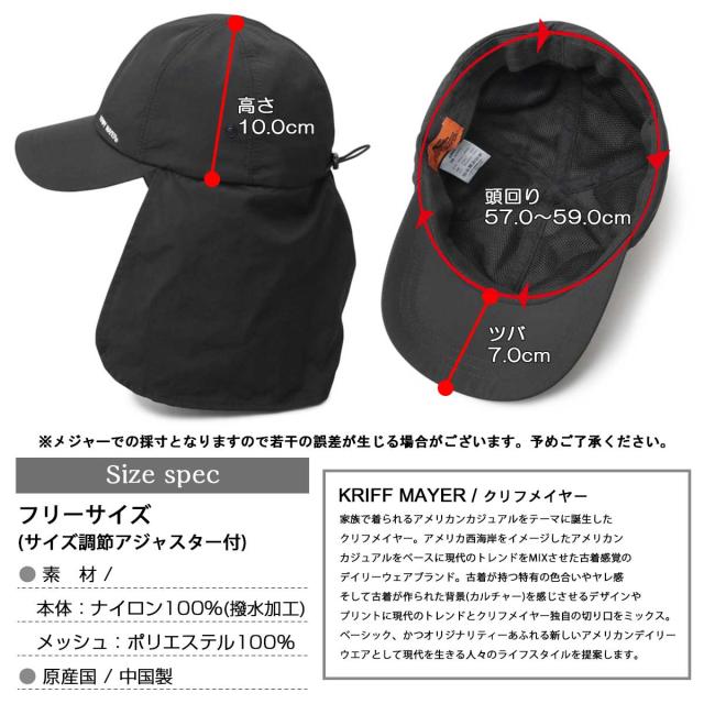 クリフメイヤー(KRIFF MAYER)/撥水加工 ナイロン 2WAY サンシェード付き キャップ 吸汗速乾スベリ使用
