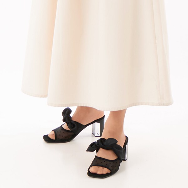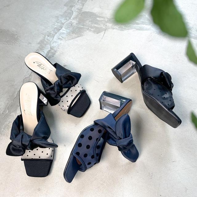 【25春夏新作】リボンモチーフ シアー ドットチュール サンダル