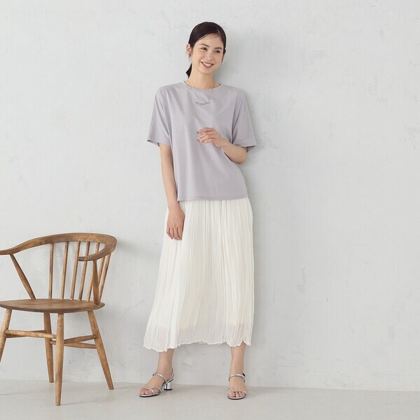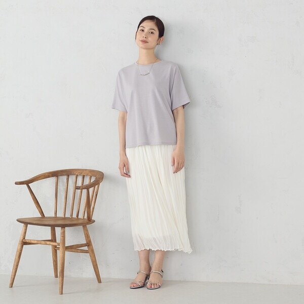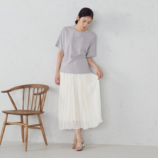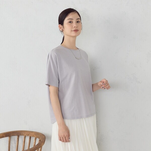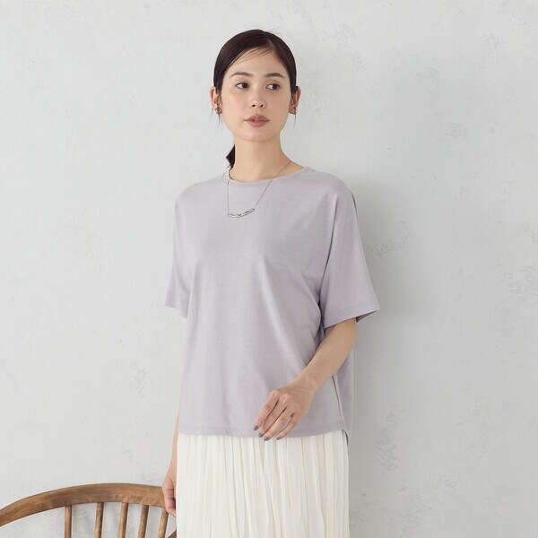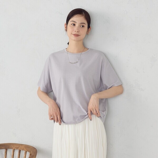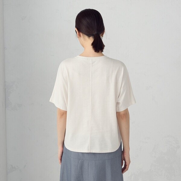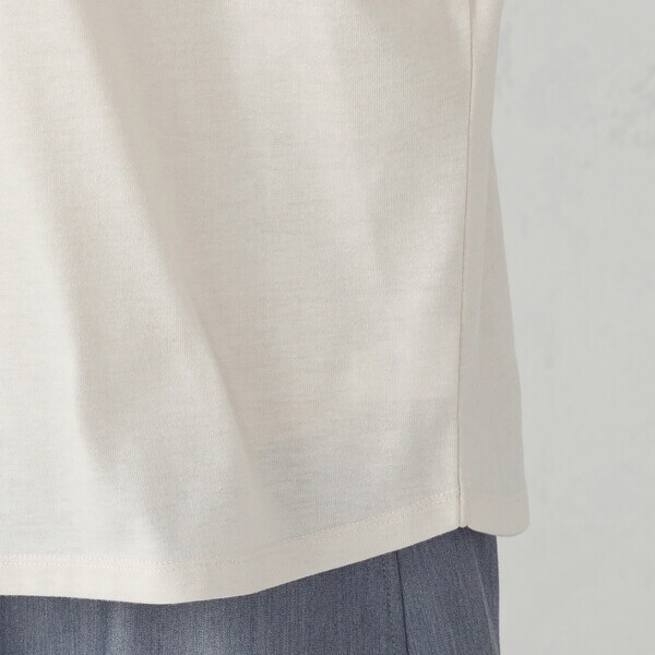 柔らかな印象のラウンドヘムは、裾をアウトしても軽やかな着こなしに。