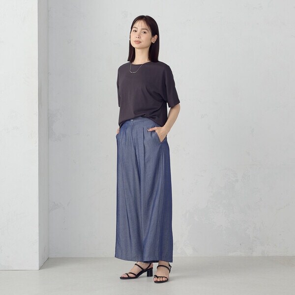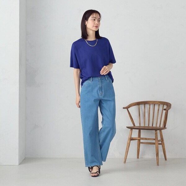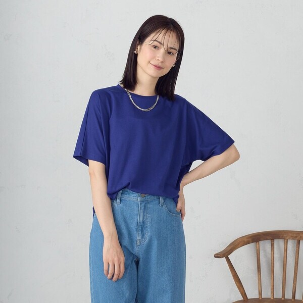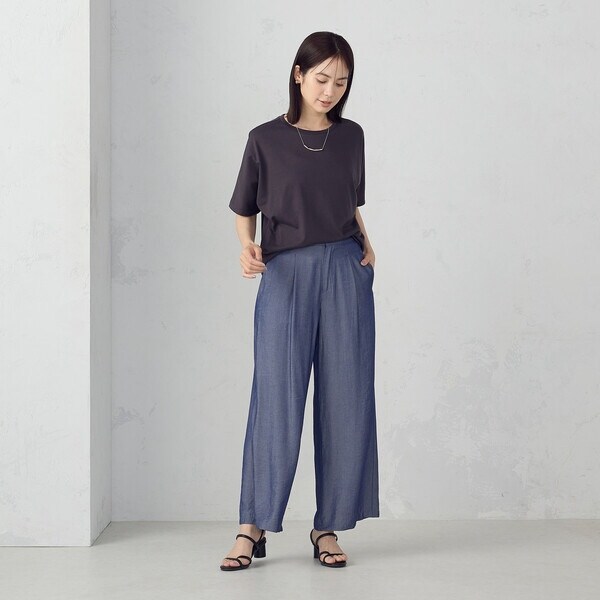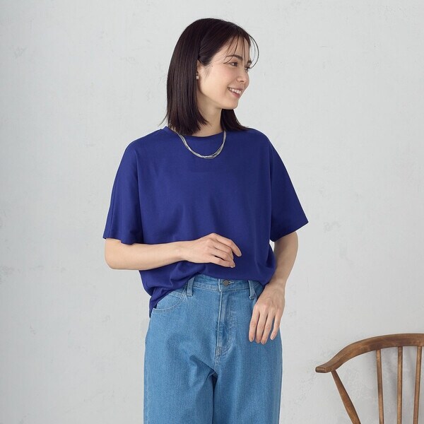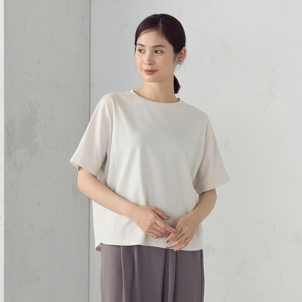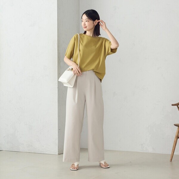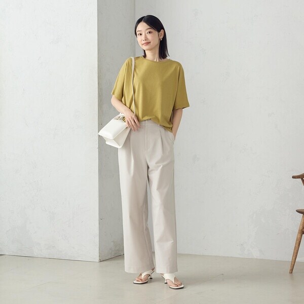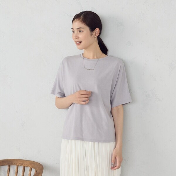 柔らかな印象のラウンドヘムは、裾をアウトしても軽やかな着こなしに。