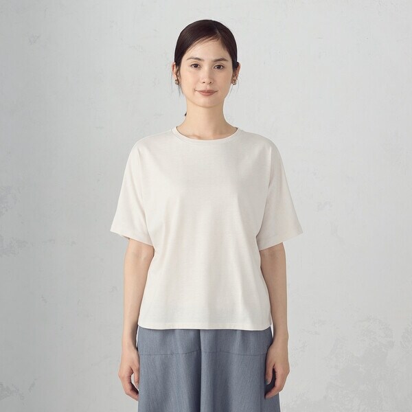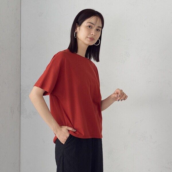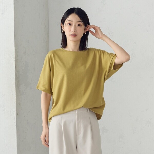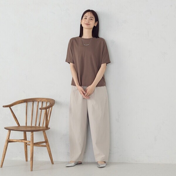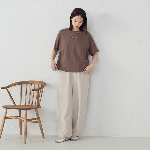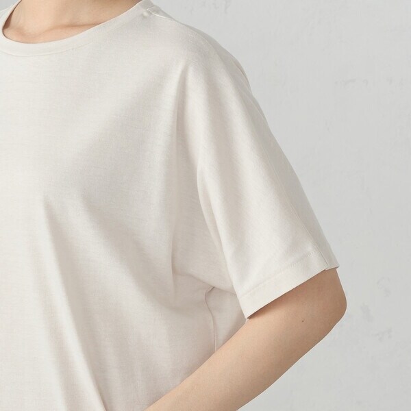 身頃からひと続きのドルマンスリーブでミニマルなデザインです。