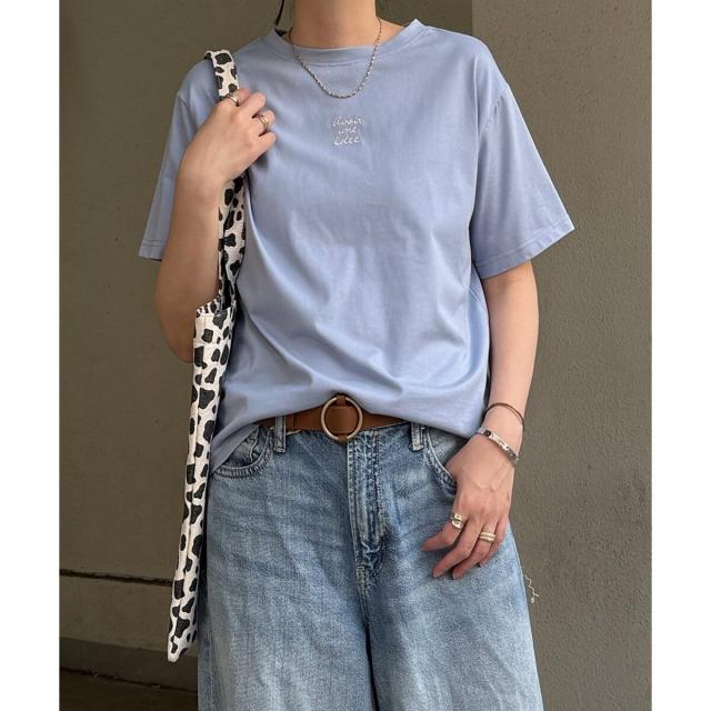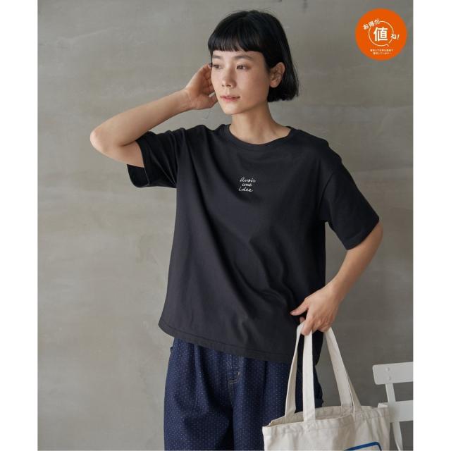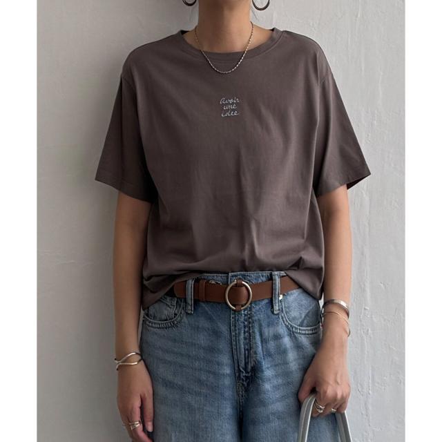 手書き風ロゴ刺繍がポイントの、シンプルで着回しやすい一枚です。