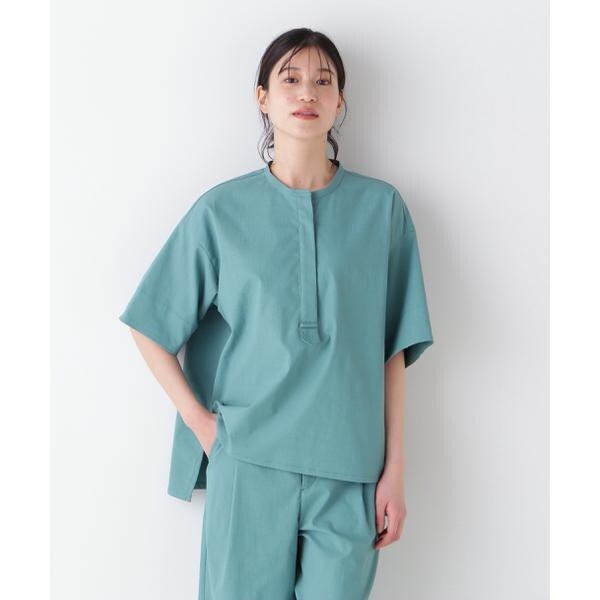 夏に肌離れするブラウスとしてボトムを選ばない一枚です。ボタンの開け具合でもきちんと感を演出したり、抜け感を出したりとシーン問わず活躍します。同素材のボトムとのセットアップもおすすめです。