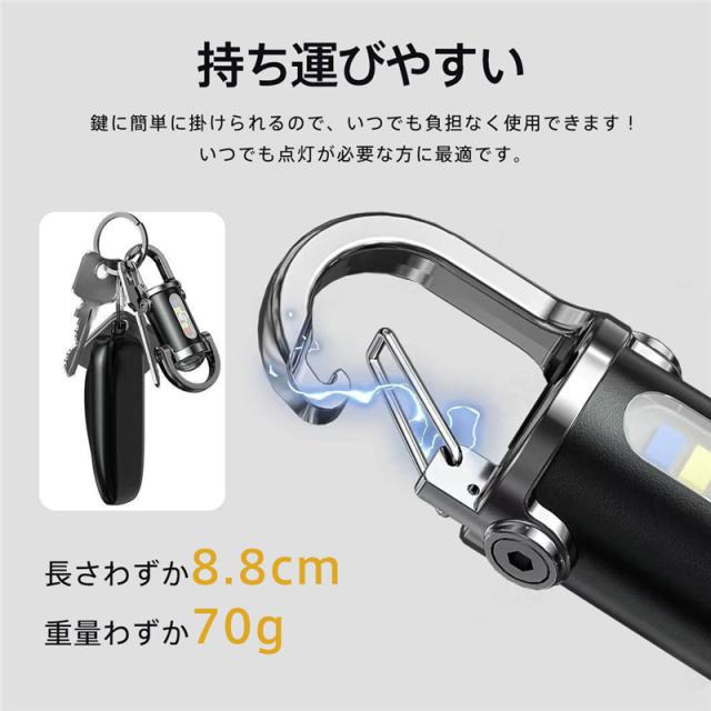 懐中電灯 LEDライト 1200ルーメン ハンディライト 6つモード USB充電式 超小型 照明 COBライト キーホルダー ミニ 母の日