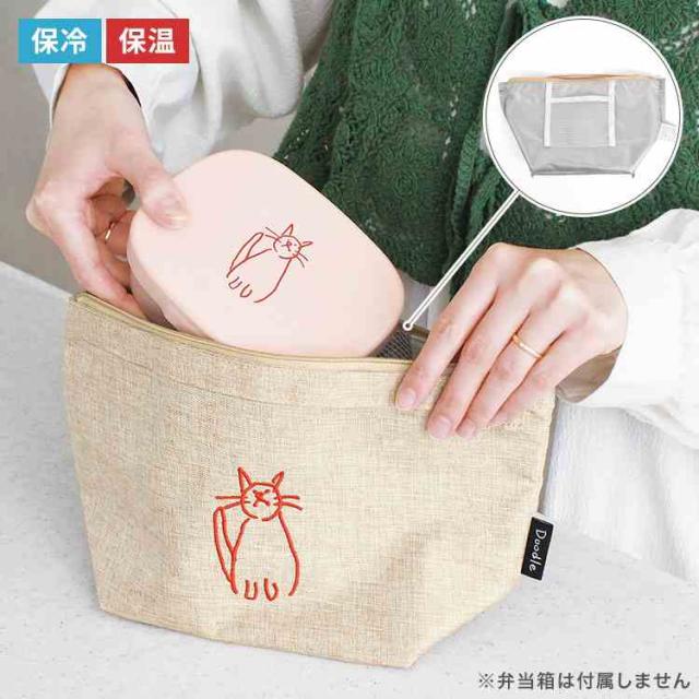 お弁当箱を入れるのに最適なサイズです。持ち手付きでバッグにも入れやすく、必要な時にサッと取り出せます。内側は簡易保冷保温効果のあるシルバーコーティング生地を使用しているので、保冷剤を併用すると保冷効果が持続しやすく、お弁当の温かさで保温効果が保たれます。内側に保冷剤を入れるメッシュポケット付き。