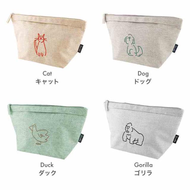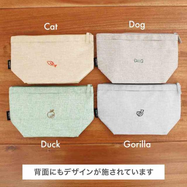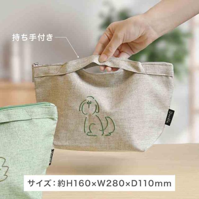 落書きのようなかわいい動物たちの刺繍がポイントの保冷ランチポーチ。