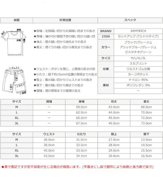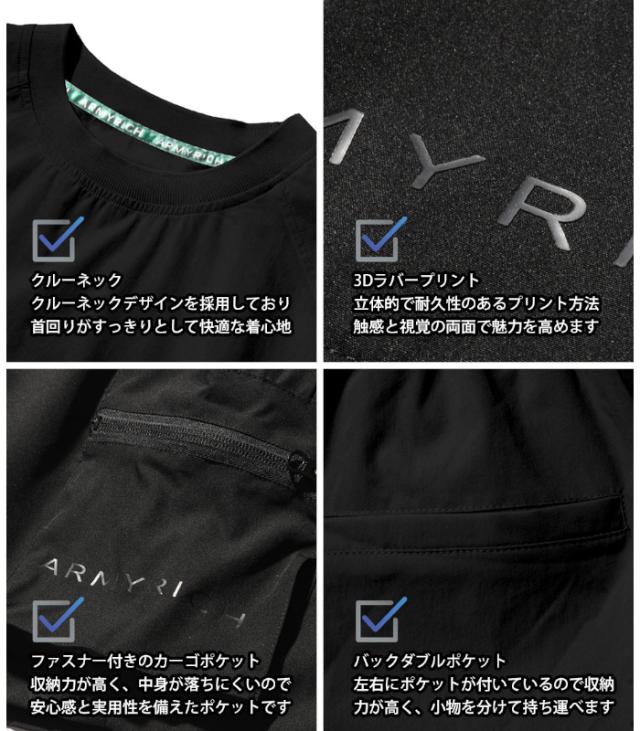 ARMYRICH アーミーリッチ セットアップ ストレッチナイロン メンズ 上下セット 男性 カジュアル スポーツ Tシャツ ショートパンツ ルームウェア