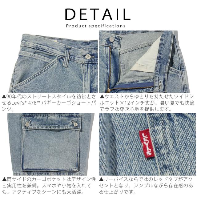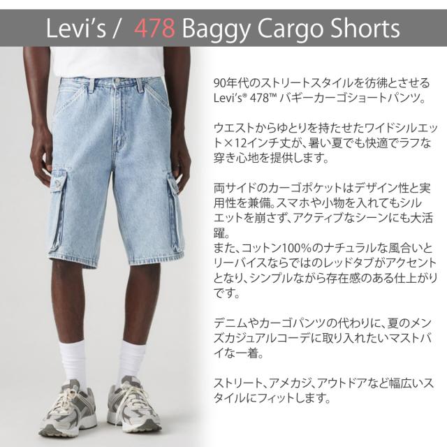 リーバイス 478 バギーカーゴショートパンツ メンズ 12インチ丈 ワイドフィット カジュアル LEVIS ( 001GU0003 001GU0004 ) メンズショートパンツ ワイドフィット カジュアル ストリートファッション レッドタブ デニムショーツ ミリタリー アーベン 普段使い 実用的