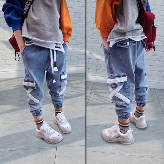 子供服 キッズ ロングパンツ デニム サルエルパンツ ジーンズ ジーパン 男の子 ジュニア 韓国こども服 ゆったり カジュアル 長ズボン ブリーチ 春秋