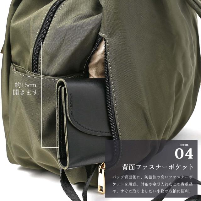 ファスナーポケットは、ミニ財布やハンカチなど厚みがあるモノも収納◎