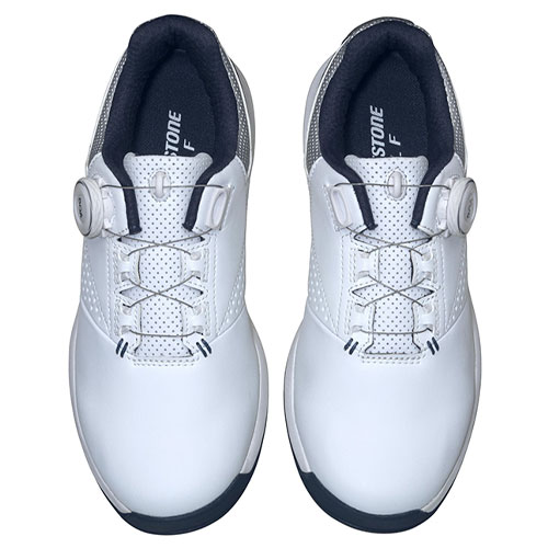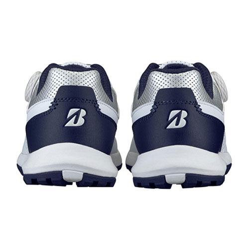 素足感覚の軽量設計で、プロも認める高グリップ性能をもつスパイクレスシューズ。アッパー部分は、シンプルでスポーティなデザインで、様々なウエアに合わせやすいカラーを採用。踵部分を緩やかなテーパーとした全体シルエットやBマークの配置など、レディスモデルらしさを演出。ソール部分はブリヂストンのタイヤテクノロジーを応用したアウトソールを採用し、安定した高いグリップ力を発揮。雨や朝露の中でも快適にプレーできる防水仕様。