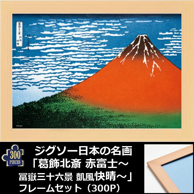 ジグソー日本の名画「葛飾北斎 赤富士--冨嶽三十六景 凱風快晴--」フレームセット(300P)ジグソーパズル 300ピース 38x26cm 浮世絵ジグソー 葛飾北斎