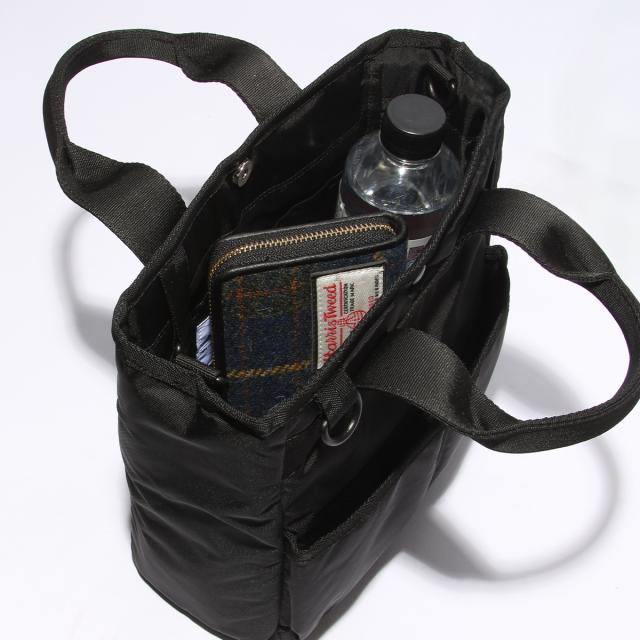 500mlペットボトルもしっかりと納まるため、散歩や近場の外出、ドライビングトートとして運転のお供にも。