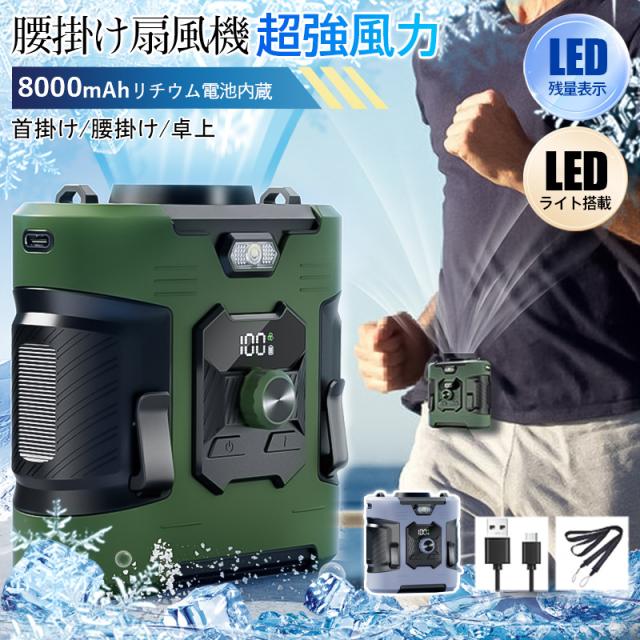 扇風機 腰掛け扇風機 強力 ベルトファン 小型 無段階調節 携帯扇風機 ハンディファン 首かけ 腰かけ LED残量表示 静音