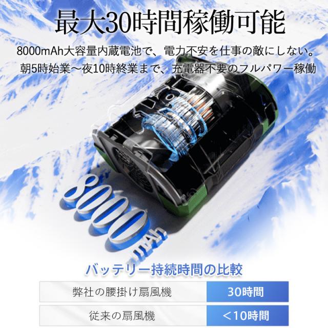 ・USB充電式、内蔵の8000mAhリチウム電池(最大30時間連続稼働)