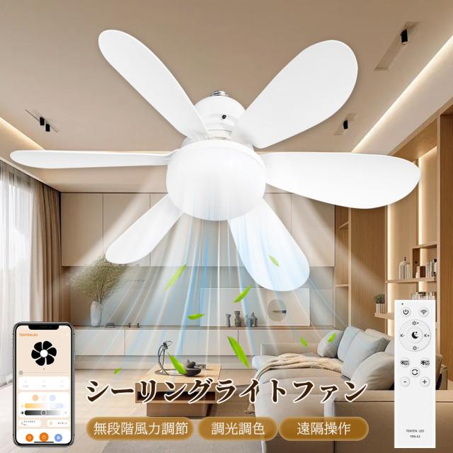 【風と光を一体化】 シーリングファン シーリングファンライト 調光 調色 逆回転 静音 天井照明 E26口金 ファン付き LED 扇風機 サーキュレータ ー 軽量 薄型 DCモーター 小型 北欧 リモコン付き 脱衣所 寝室 居間 部屋 省エネ リビング 音声操作 スマホ操作 アレクサ対応