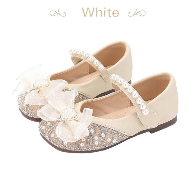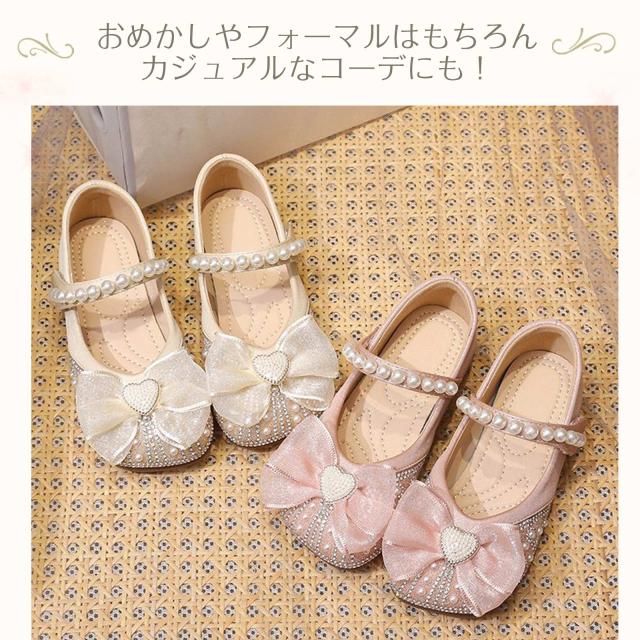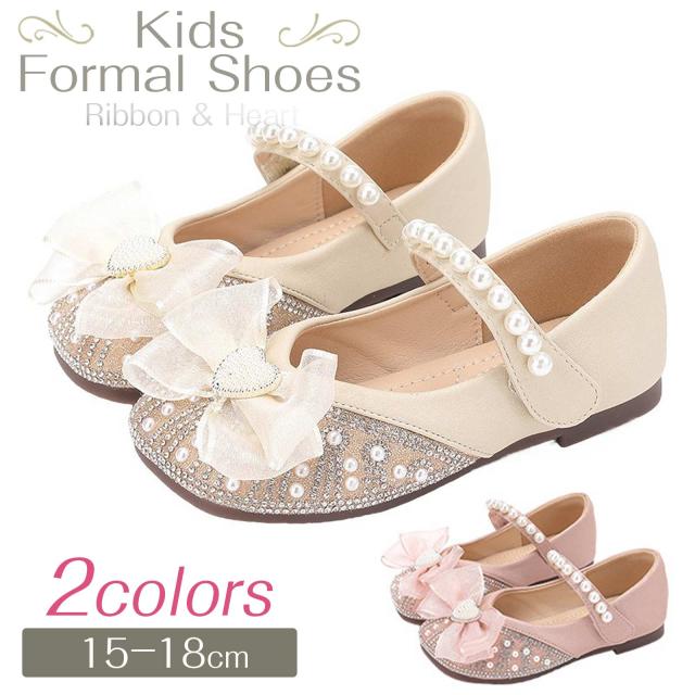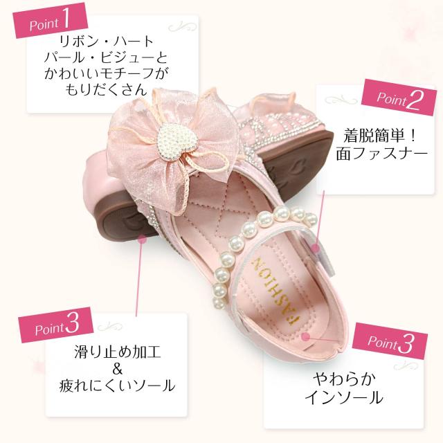 フォーマルシューズ キッズ ハート リボン 子供 靴 女の子 ラバーソール ビジュー パール ワンストラップ 発表会 結婚式 入園式 卒園式 入学式 冠婚葬祭 誕生日 プレゼント フォーマル シンプル ホワイト ピンク