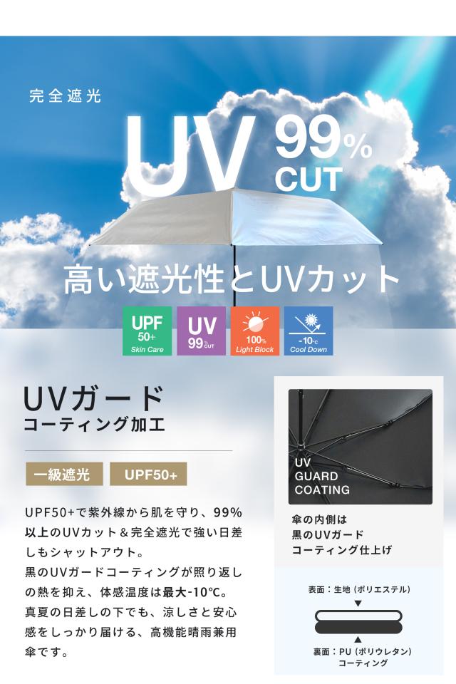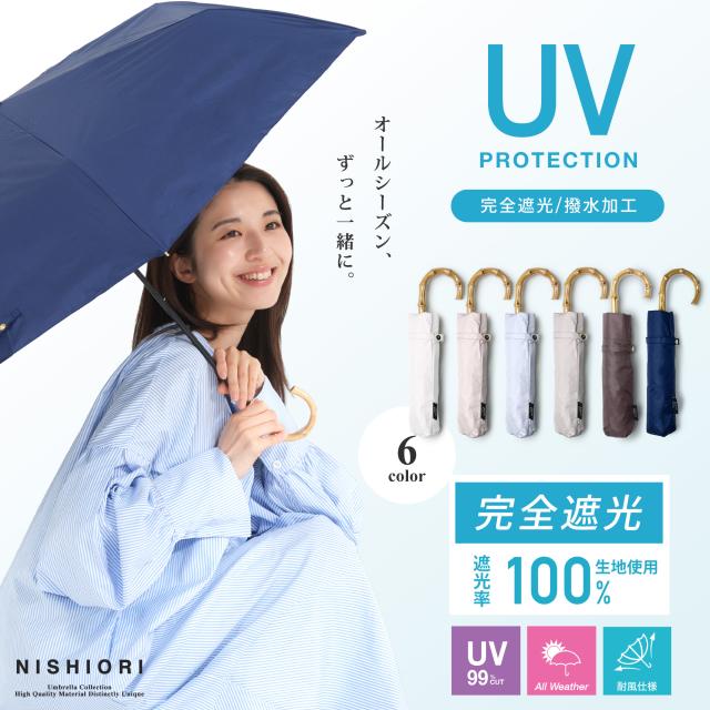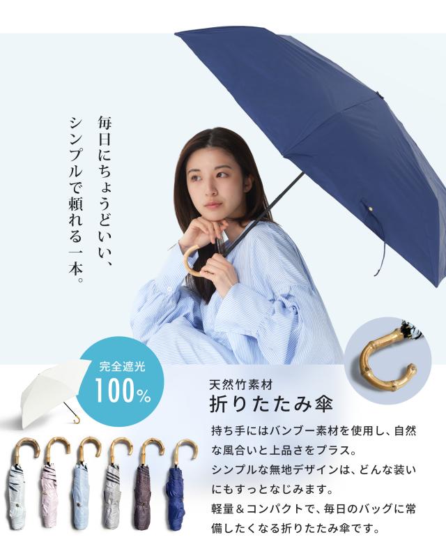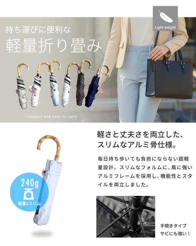 日傘 晴雨兼 バンブーハンドル 超軽量&スリム 折りたたみ傘 選べる6色 UV Air 遮光率100% 撥水加工 グレー ネイビー サックス ブラック 98cm