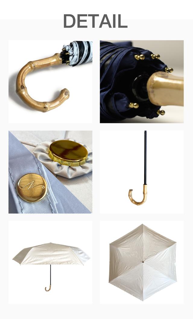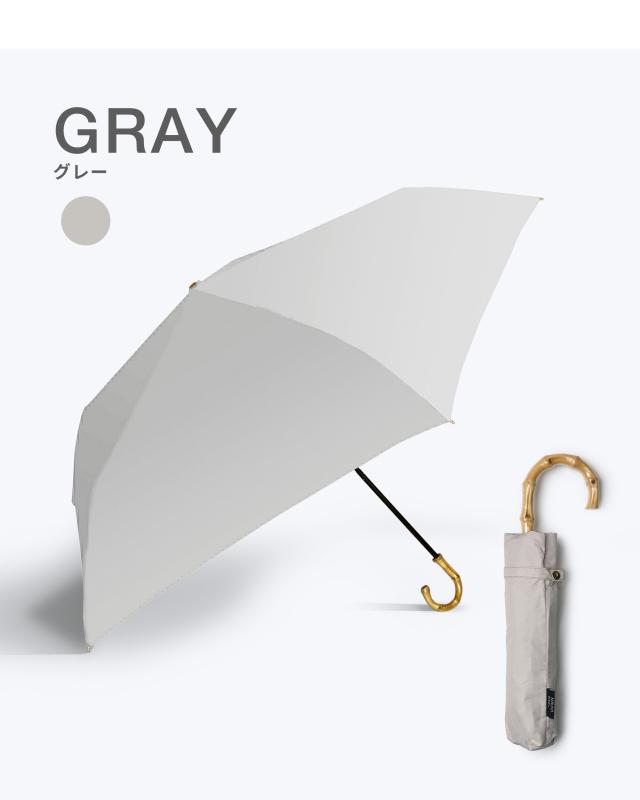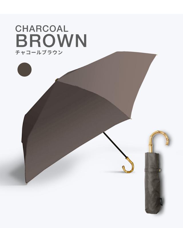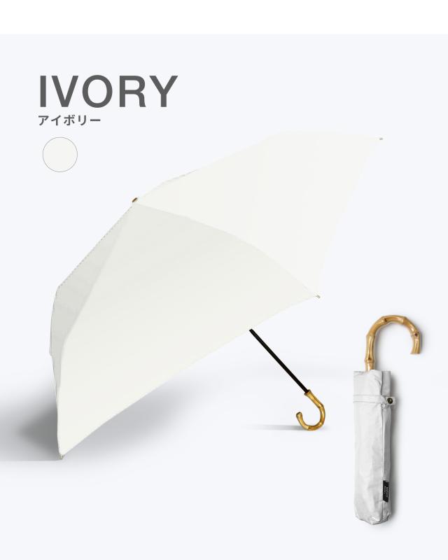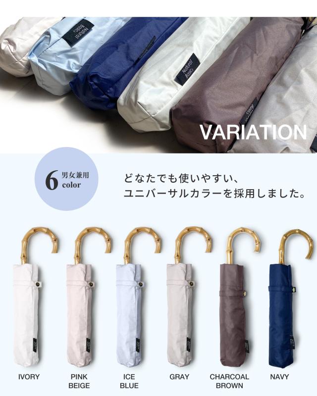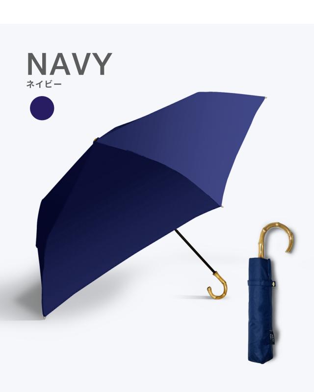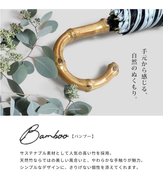 バンブーの持ち手がおしゃれな完全遮光の折りたたみ傘です。