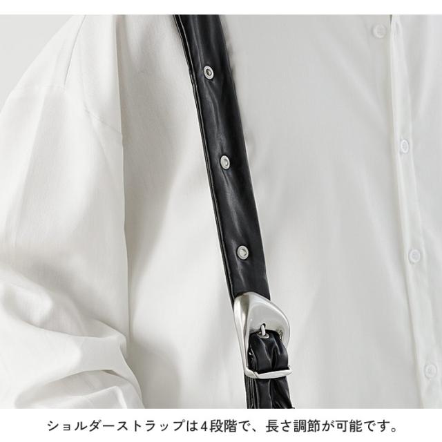 長さ調整可能なショルダーストラップにはバックルデザインを採用し、スタイルに合わせてアレンジ可能。