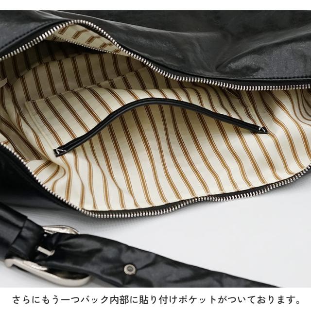 長さ調整可能なショルダーストラップにはバックルデザインを採用し、スタイルに合わせてアレンジ可能。広めの開口部と収納力のある内部設計で、見た目だけでなく機能面でも優れています。シーズンレスで使える万能アイテムとして、デイリーからお出かけスタイルまで幅広く活躍します。