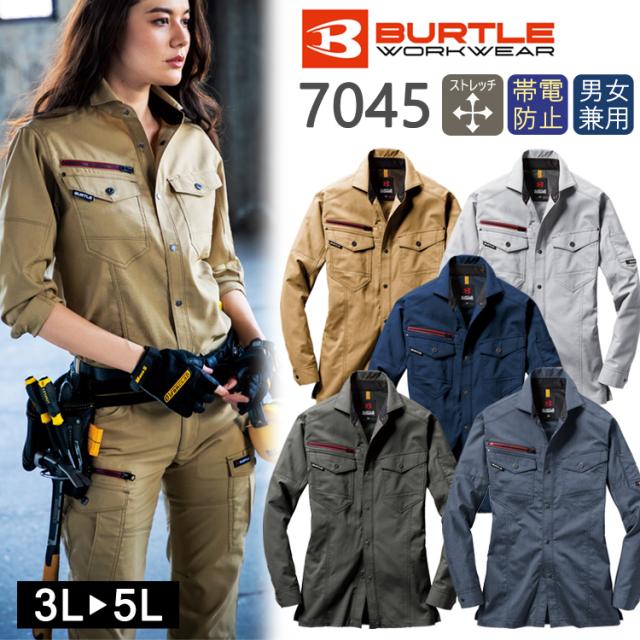 大きいサイズ 長袖シャツ オールシーズン ワークシャツ バートル 7045 ワークウェア カジュアルシャツ ロングスリーブ シャツ 作業着 ワークウェア かっこいい おしゃれ