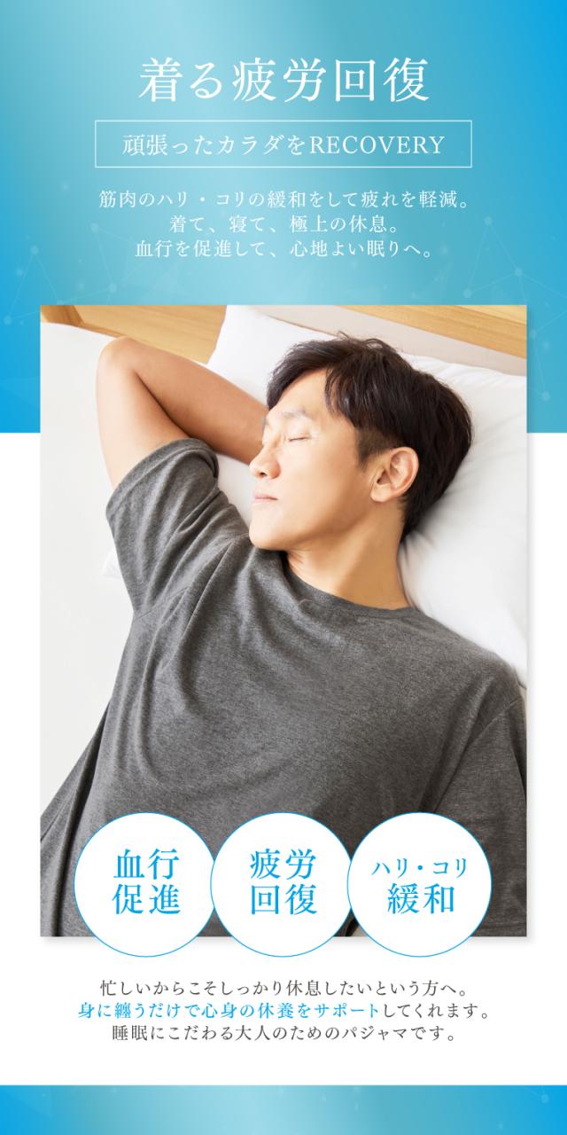 日々の体の疲労を軽減緩和する「一般医療機器」のルームウェアです。