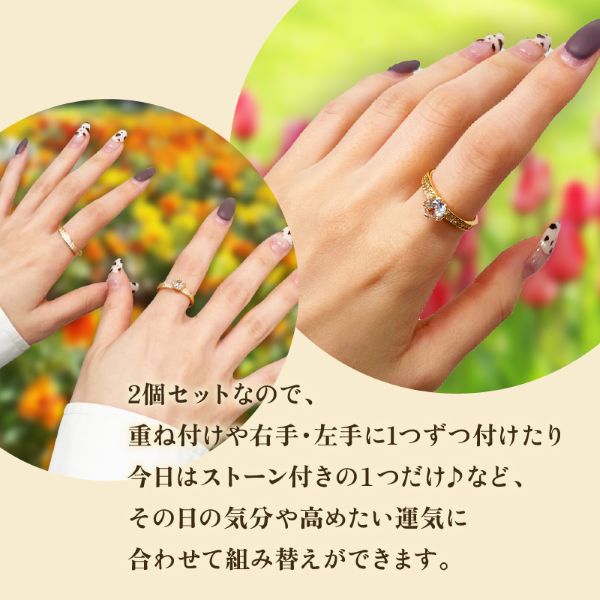2個セットなので、重ね付けや右手・左手に1つずつ付けたり今日はストーン付きの1つだけ♪など、その日の気分や高めたい運気に合わせて組み替えができます。
