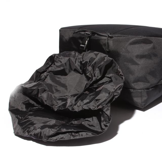 中にはバックルで固定可能な純正レインカバー。