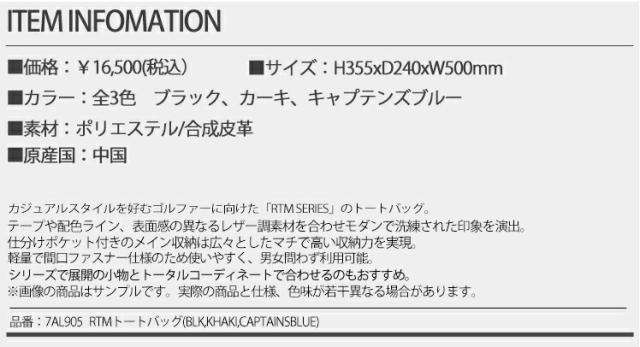 カジュアルスタイルを好むゴルファーに向けた「RTM SERIES」のトートバッグ。