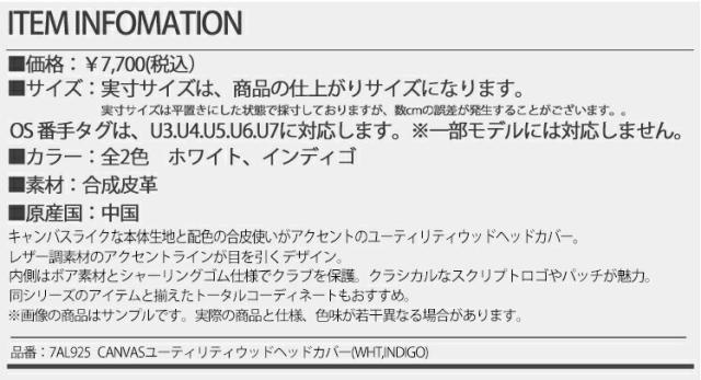 キャンバスライクな本体生地と配色の合皮使いがアクセントのユーティリティウッドヘッドカバー。