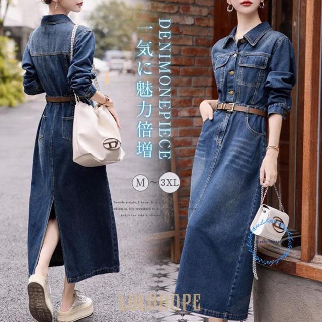 デニムマキシワンピース ロング丈デニムワンピース マキシ丈 デニムワンピース デニム ワンピース ロング丈 マキシ 春 夏 秋