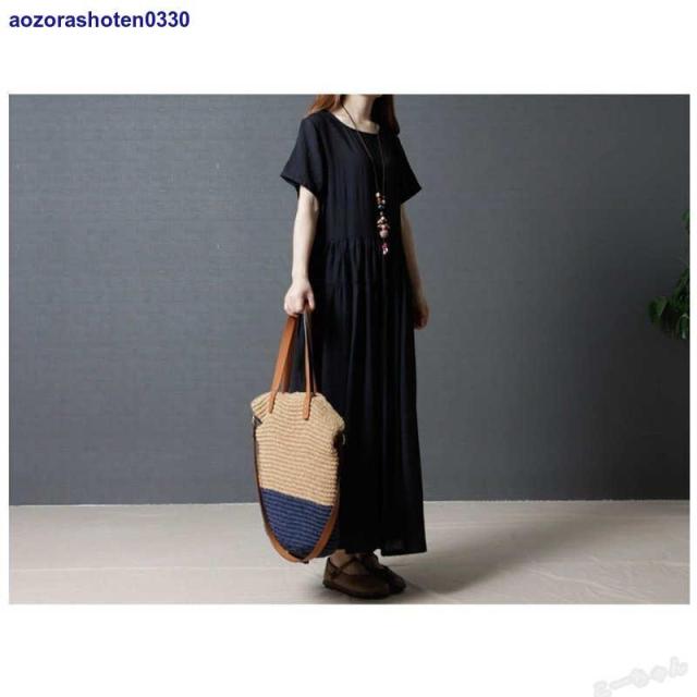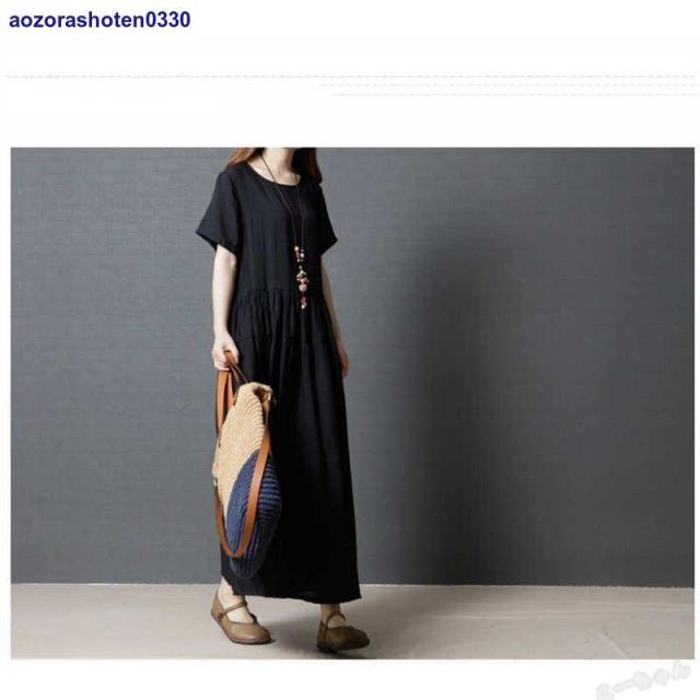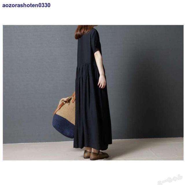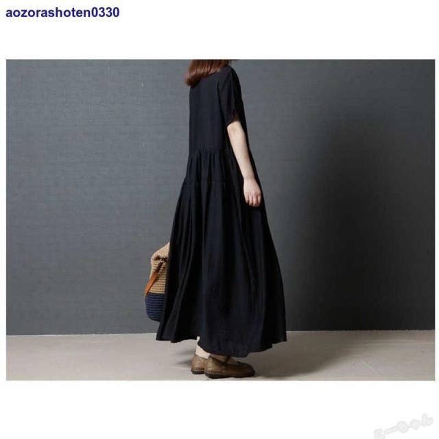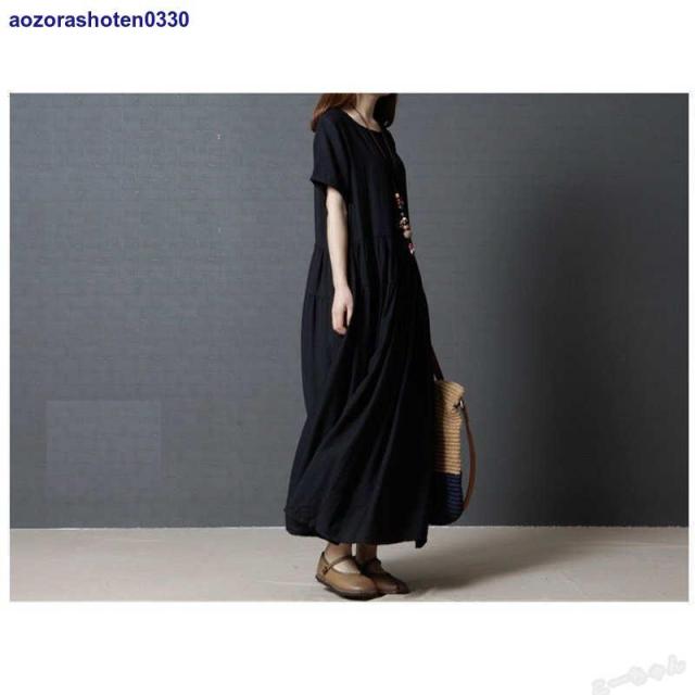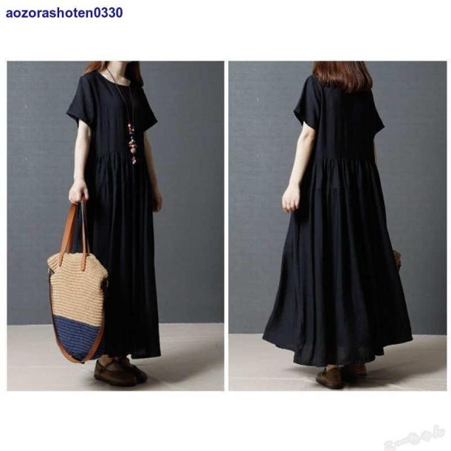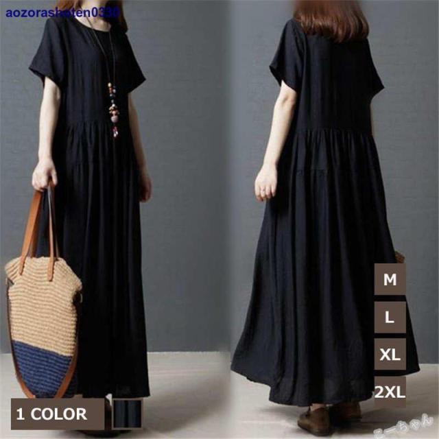 ワンピース レディース 春 夏 マキシ丈 大きいサイズ レディース 半袖 黒 ブラック リネン ロング ワンピース カジュアル 秋 二次会 お呼ばれ 通勤 XXL 40代